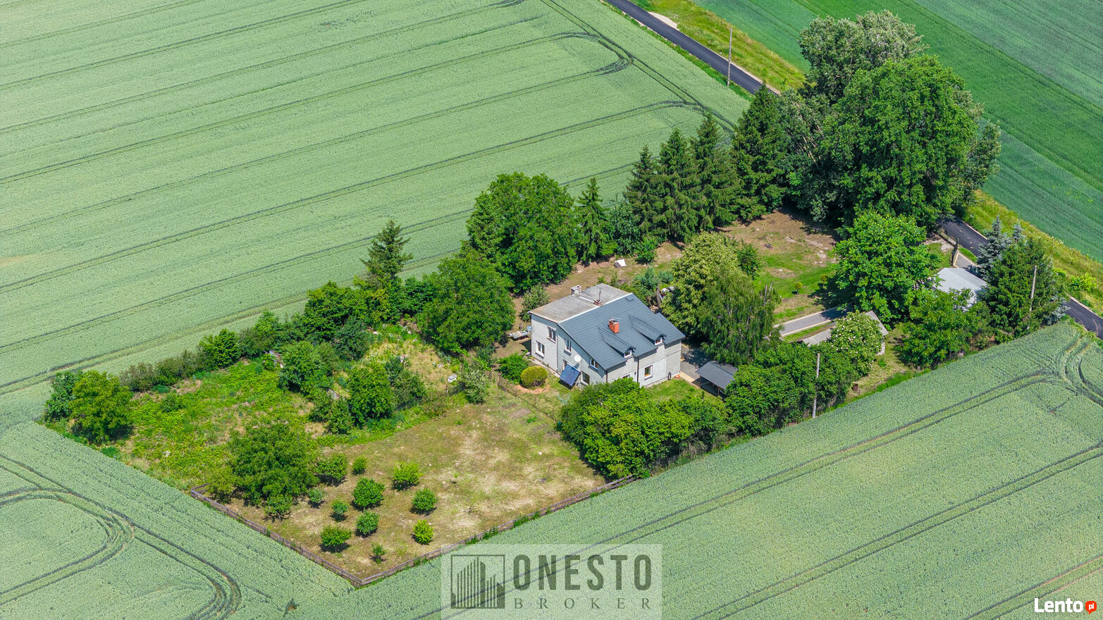 Nieruchomość znajduje się wśród rozległych terenów zielonych, po sąsiedzku znajdują się wyłącznie pola, lasy i stawy rybne. Powierzchnia całkowita domu ma około 128 m2, natomiast powierzchnia użytkowa to ok. 86,51 m2.